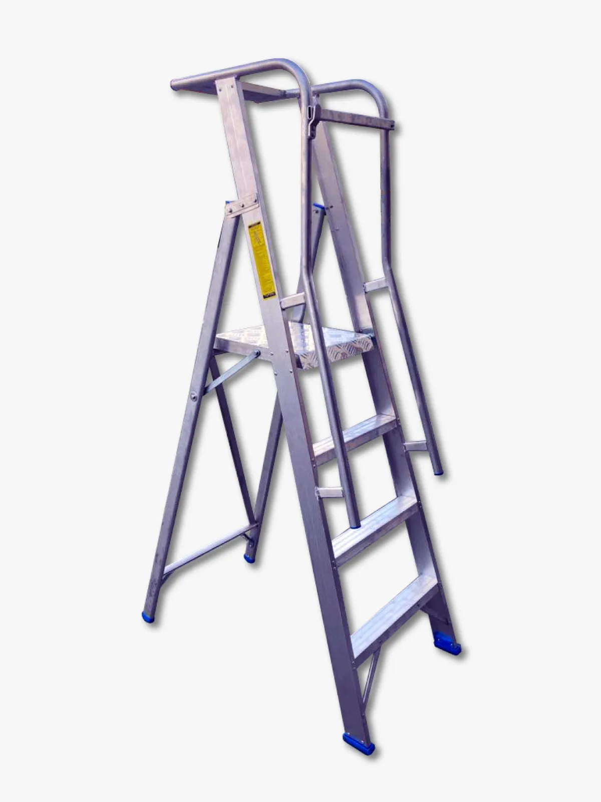Firstly, the ladder features wide, slip resistant aluminium steps that provide secure footing during climbs. Additionally, the guardrail and handrails offer added protection, giving users extra confidence while working on elevated platforms. Moreover, its foldable design enables easy transport and compact storage, ideal for busy job sites.