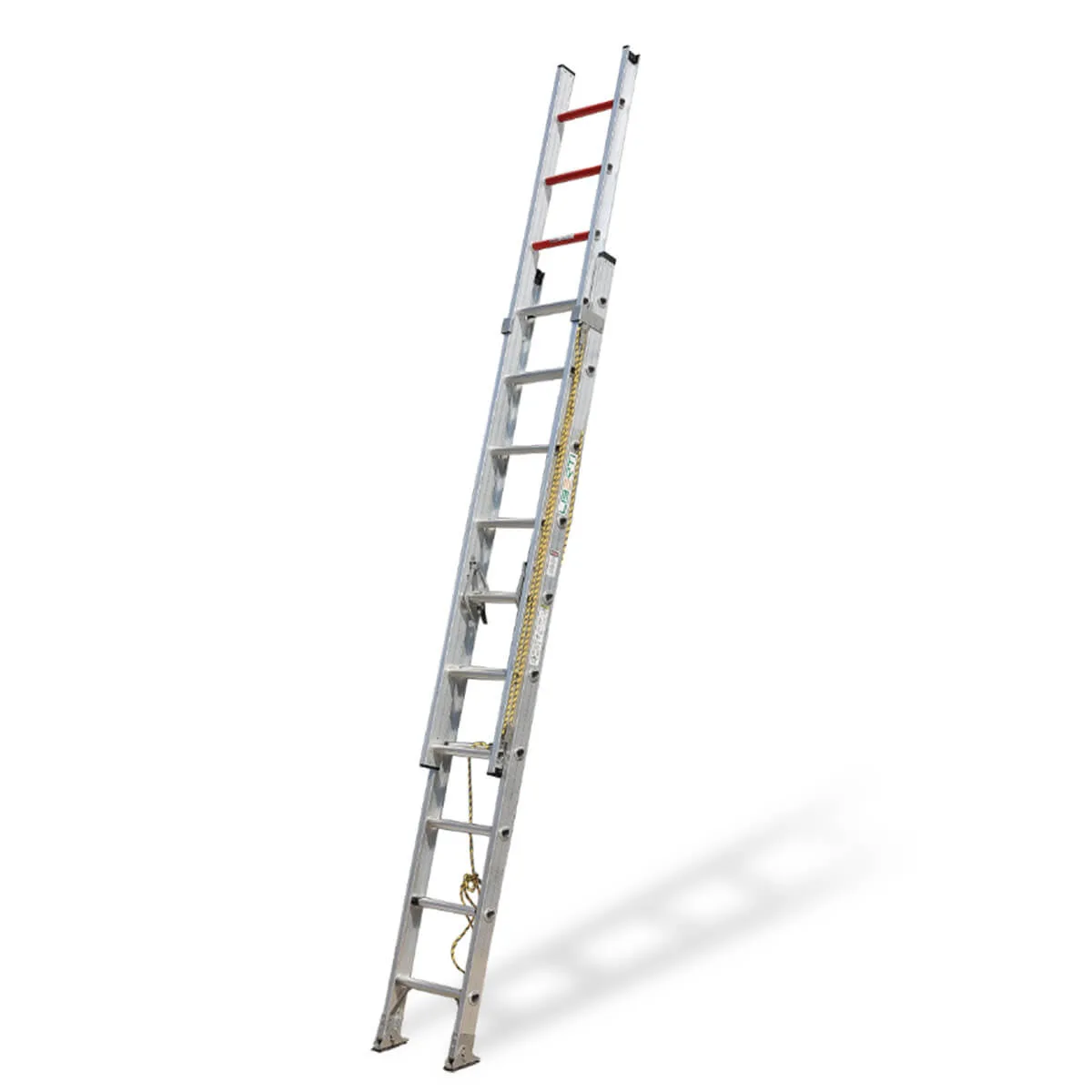 Available in sizes ranging from 5+5+5 to 19+19+19 steps, the Triple Section Aluminium Ladder extends from 4.2 meters up to 16.8 meters. When positioned at a 75° angle, it delivers effective working heights between 4.06 and 16.24 meters, making it adaptable to a wide range of job requirements.